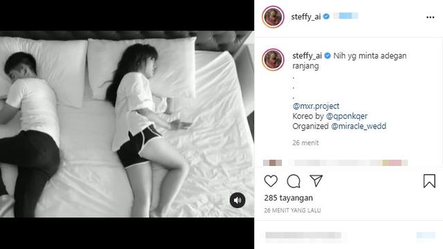 Wanita 27 tahun ini mengunggah videonya dalam format hitam putih. Steffy dan suami pun bukannya beradegan ranjang dengan pose yang membuat warganet berpikir macam-macam.