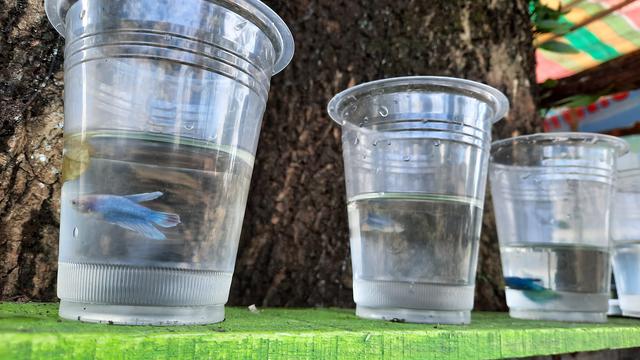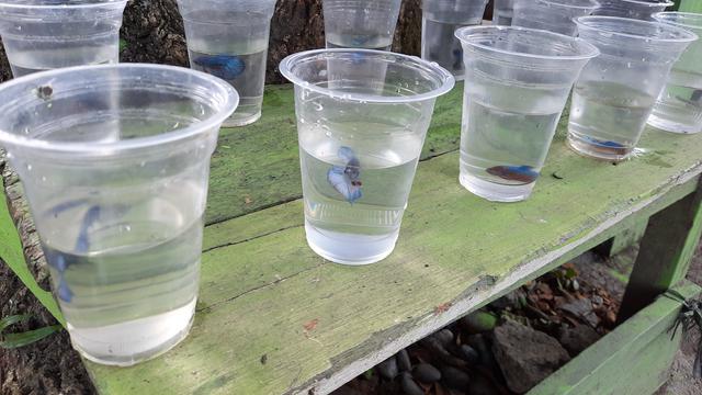 Gelas berisi ikan cupang yang dijual oleh Efendi, 37 tahun. Lapaknya terletak di pinggiran jalan Meulaboh-Tapak Tuan. Foto diambil di waktu yang berbeda dengan waktu wawancara (Liputan6.com/Rino Abonita)Ikan hias satu ini bernama ilmiah Betta splendens serta merupakan jenis ikan eksotis yang memiliki kemampuan bertahan hidup lama bahkan ketika ditempatkan ke dalam wadah sempit tanpa aerator atau alat sirkulasi udara sekalipun. Perawatannya juga tergolong gampang.