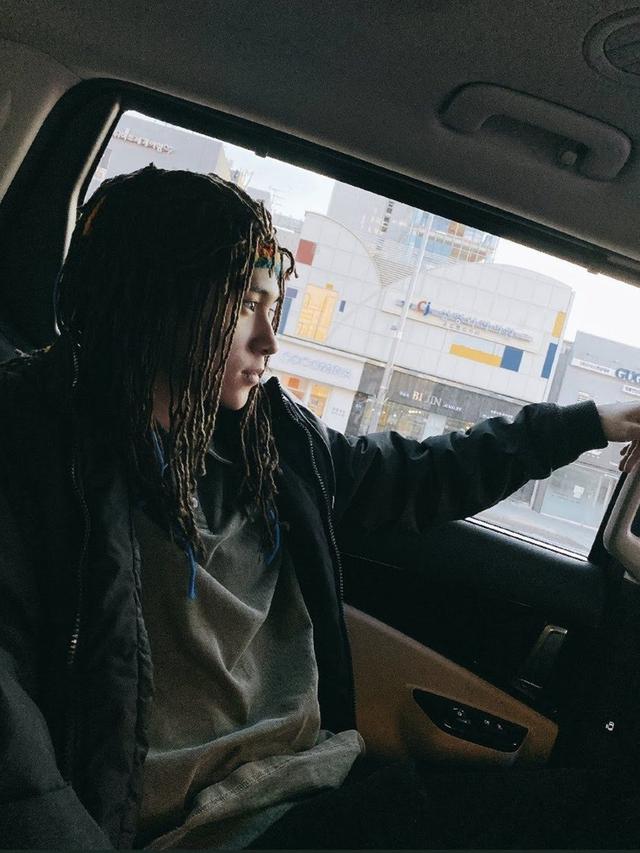 - Hendery NCT tampil dengan wig twist dan ikat kepala bergaya Jamaican Rastafari.