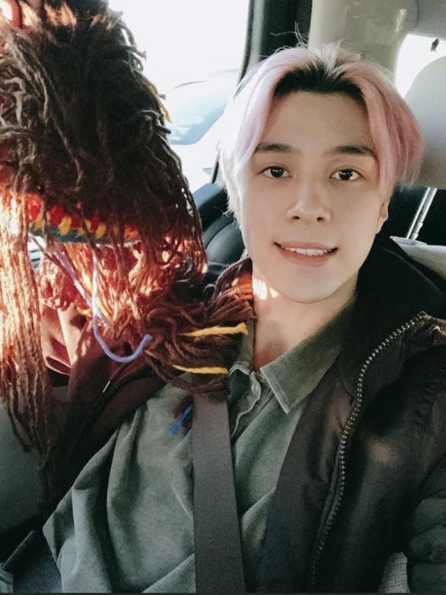 Tak hanya satu, idol binaan SM Entertainment ini mengunggah beberapa pose sekaligus yang memperlihatkannya berpose dalam mobil. Di foto terakhir, Hendery melepas wignya dan memperlihatkan rambut aslinya yang dicat pink.