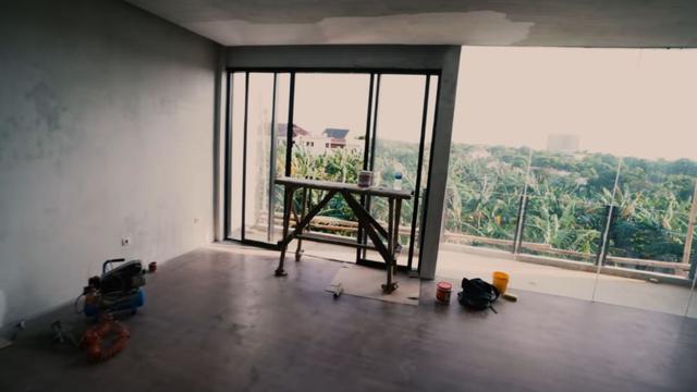 Rumah Adipati Dolken di Bintaro, Jakarta. (Sumber: YouTube DOT Entertainment)Ini adalah area ruang tamu yang dalam videonya, Adipati mengutarakan niat untuk mengisinya dengan televisi dan sofa.