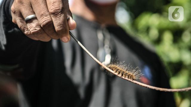 Seorang petugas kemanan setempat, Bambang saat menunjukkan ulat bulu yang muncul ke permukiman warga di Jalan Haji Dogon, Pondok Kelapa, Jakarta, Rabu (25/11/2020). Menurut Bambang, fenomena munculnya kawanan ulat bulu tersebut terjadi akibat datangnya musim penghujan. (merdeka.com/Iqbal Nugroho)Meski begitu, jenis pangan berbasis serangga mungkin tidak untuk semua orang. Mereka yang alergi udang dan tungau kemungkinan besar akan mengalami reaksi alergi di mulut dan kulit.