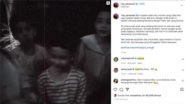 "Mari sejenak panjatkan doa untuk Matt, agar almarhum husnul khatimah, dan keluarga yang ditinggalkan diberi kekuatan. @official.mattwhite @yani_enough," tutup Risa Saraswati.