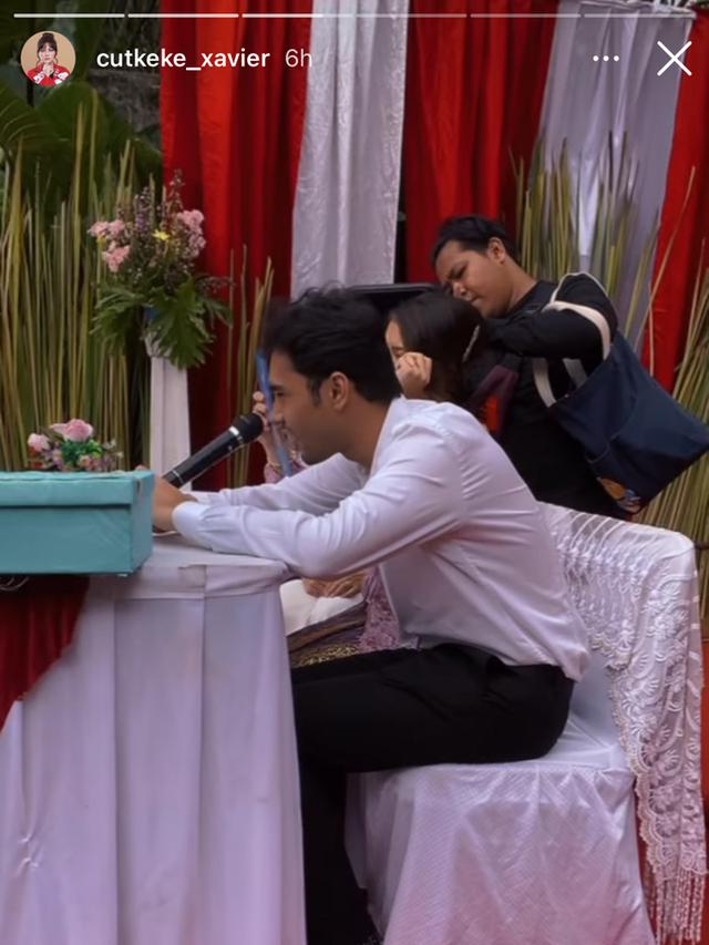 Achmad Megantara dan Angela Gilsha syuting adegan nikah di sinetron Dewi Rindu (Foto: Instagram/@cutkeke_xavier)Dalam potretnya, terlihat juga sosok Maudy Wilhelmina dan Dominique. Maudy memerankan Marinka, ibu kandung Dewi sementara Dominque berperan sebagai Rindu.