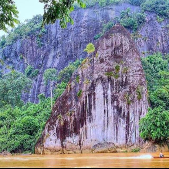 Objek wisata ini menawarkan pemandangan indah dan mempesona, berbentuk batu besar yang menjulang tinggi di Sungai Kahayan. Letaknya yang menjorok ke Sungai Kahayan seakan-akan batu ini jatuh ke sungai. Di sekitar objek wisata masih sangat alami, dengan pepohonan hutan yang tumbuh di sekitarnya.