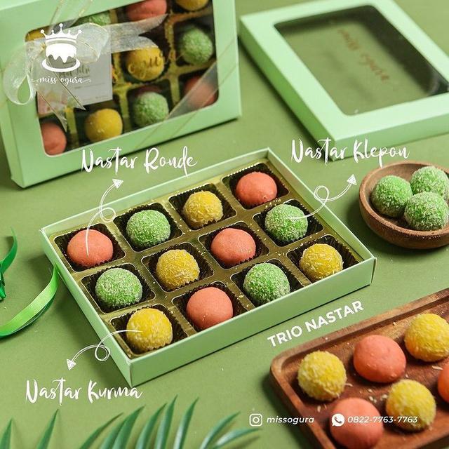 Salah satu kue Lebaran, yakni Trio Nastar dari Miss Ogura. (dok. Instagram/missogura)Opsi pembaruan agar pelanggan tidak bosan dihadirkan Miss Ogura setelah mendapat masukan di tahun lalu. Para pelanggan toko kue ini bahkan datang dari luar kota khusus membeli hantaran unik tersebut.