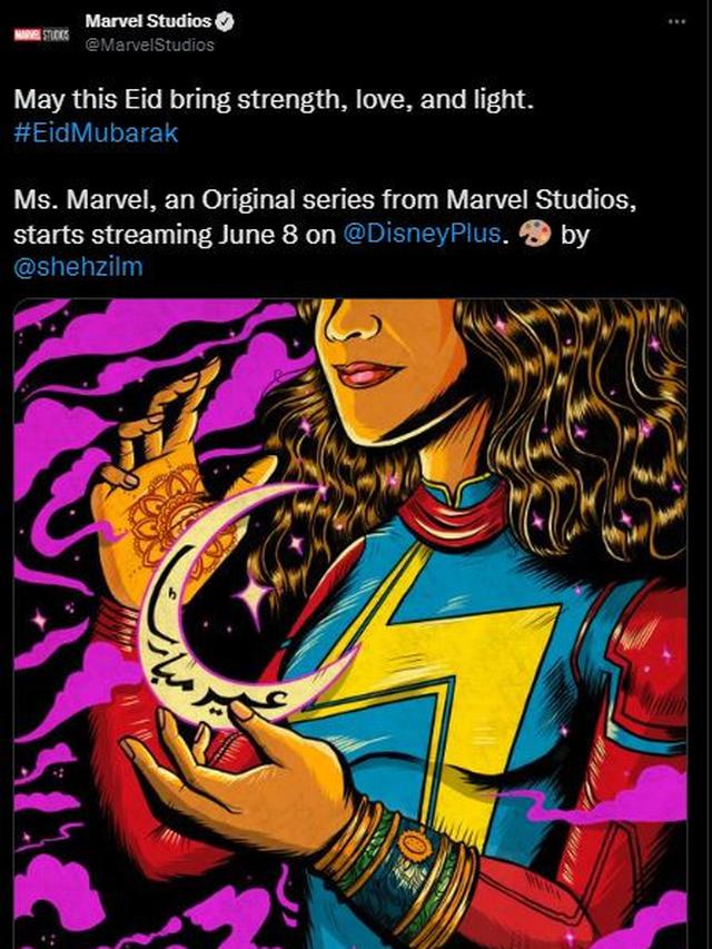 Marvel Studios juga mengucapkan selamat Idulfitri lewat pahlawan superhero muslim pertama mereka, Ms Marvel.