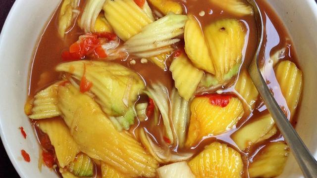 Bumbunya yang khas dengan aneka buah di dalamnya membuat makanan ini digandrungi tidak sedikit orang. Sesuai namanya, rujak kuah pindang menggunakan bumbu yang berasal dari kaldu ikan pindang, melansir situs web Kemendikbud.