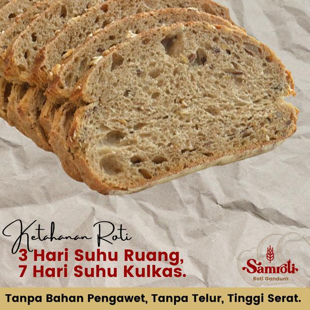 "Produk Samroti ada 12 varian yang mengkhususkan roti berbahan dasar gandum utuh. Untuk menu pre-order yang menjadi andalan adalah varian roti gandum multigrains dengan taburan biji-bijian kaya manfaat dan kadar gandum utuhnya paling tinggi," jelas mereka.