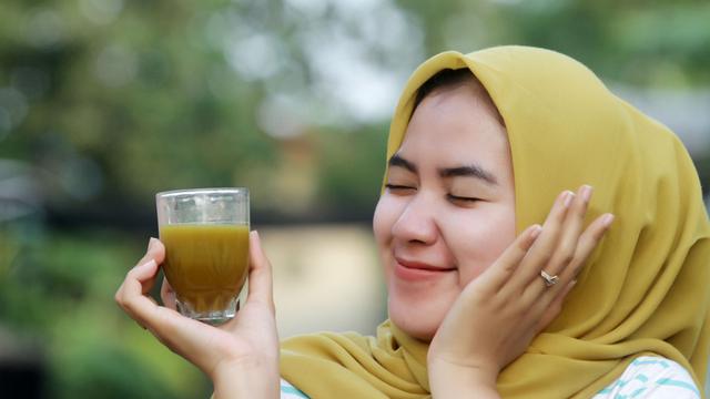 "Pahit-pahit kunyit saja enak, bagus, " imbuh Geiyarsi. "Ibu-ibu, anak gadis, bapak-bapak yang ingin segar badan, sehat, dan menghilangkan pegal linu dan capek badan juga (minum jamu."