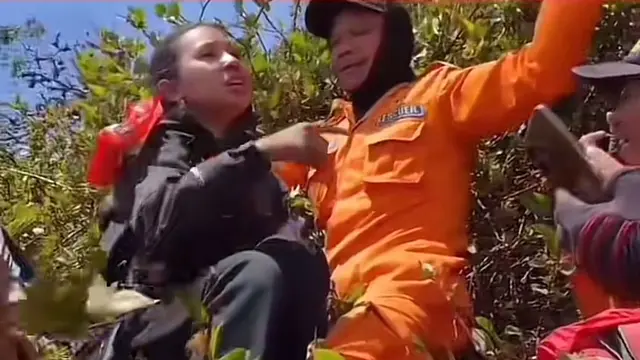 NoneTampak dalam unggahan, Naomi, yang baru saja ditemukan Tim SAR, berjalan melewati jalan setapak di tengah semak. Ia memakai jaket hitam bertudung yang melindungi wajahnya dari sengatan sinar matahari.