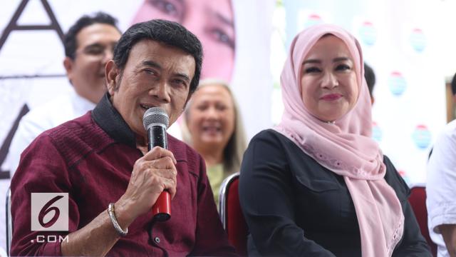 Ekspresi Rhoma Irama bersama istrinya Ricca Rachim saat tiba untuk menghadiri konferensi pers indosiar Ramadhan Penuh Berkah di Jakarta, Kamis (26/4). Rhoma menikahi Ricca pada 1984 dan bertahan hingga saat ini. (Liputan6.com/Faizal Fanani)Di foto lain, Rhoma Irama dan Ricca Rachim terlihat romantis meski sedang diguyur hujan. Rhoma Irama juga menunjukkan kasih sayang dan perhatiannya dengan memayungi sang istri.