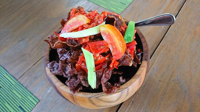 Dendeng Batokok kreasi Restoran Plataran. (Liputan6.com/Dinny Mutiah)Namanya familiar sebagai makanan khas dari Sumatera Barat. Tapi, dendeng batokok kreasi Plataran punya perbedaan signifikan, yakni dagingnya yang tipis dan renyah.