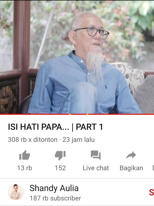 Shandy Aulia. (Foto: YouTube Shandy Aulia)“Bukan kangen lagi. Cuma Papa waktu itu dihalang-halangi terus sama Mama kamu. Enggak boleh ketemu waktu itu takut kamu diambil sama Papa,” Kemas Yusuf Effendy mengenang.