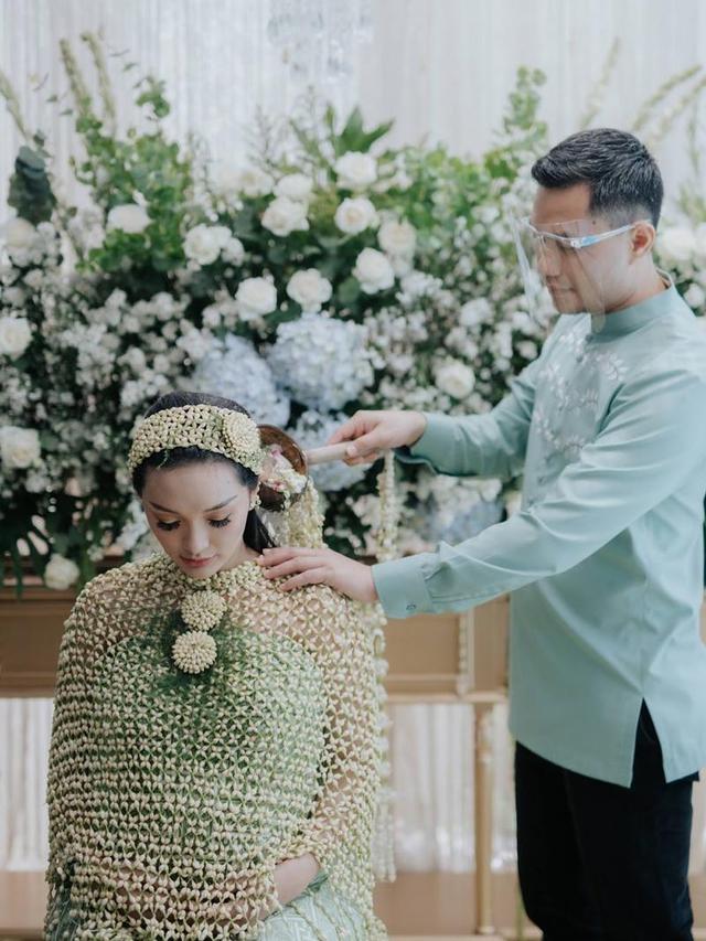 Zaskia Gotik dan Sirajuddin Mahmud. (Foto: Instagram @rh_weddingplanner)Hamil di tengah wabah menyimpan romantika tersendiri. Selain masker dan menjauhi keramaian, penggunaan face shield disarankan untuk menahan laju penularan atau infeksi Corona Covid-19.