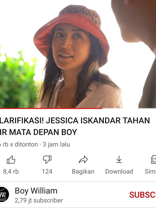 Pengakuan ini terekam dalam video bertajuk “Klarifikasi, Jessica Iskandar Tahan Air Mata Depan Boy” yang dipublikasikan kanal YouTube Boy William, Senin (9/10/2020).